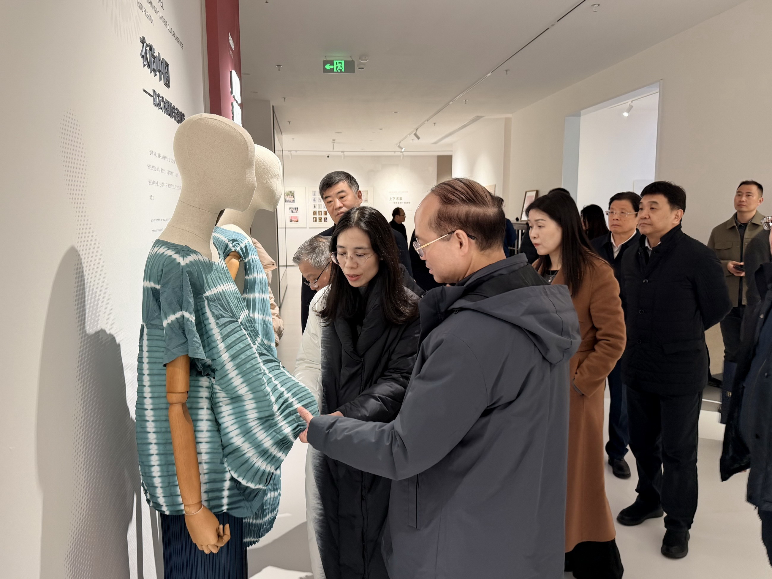 调研期间,周总向调研组详细介绍了企业深耕纺织服装领域的发展历程与实践成果。多年来,集团始终坚守扎染非遗技艺的文化内核,以“非遗技艺+智能制造+文旅体验”为发展定位,积极探索非遗技艺与产业化、时尚化、科技化的深度融合。随后,周总陪同调研组前往南通市华艺扎染博物馆实地参观,详解介绍了博物馆运营模式与功能定位,系统展示了扎染技艺的历史渊源以及集团自主研发的特色文创产品,让调研组直观感受海安扎染深厚的文化底蕴与独特的艺术魅力。
