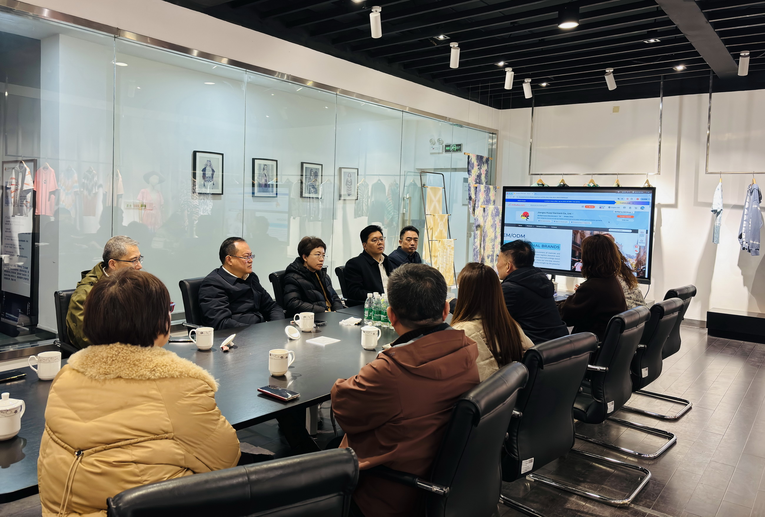 座谈交流中,邰总详细汇报了华艺跨境电商业务的成立背景、当前运营成效及未来发展规划。他表示,自2026年1月华艺跨境电商部正式启动运营以来,始终聚焦扎染文化出海与海外市场拓展,依托企业在艺术染整、现代扎染领域的技术优势和产品特色,搭建了阿里国际站等跨境电商运营平台,逐步打开海外市场新局面。同时,邰总结合企业实际,就向标杆企业学习、相关政策扶持等方面的需求作了汇报。