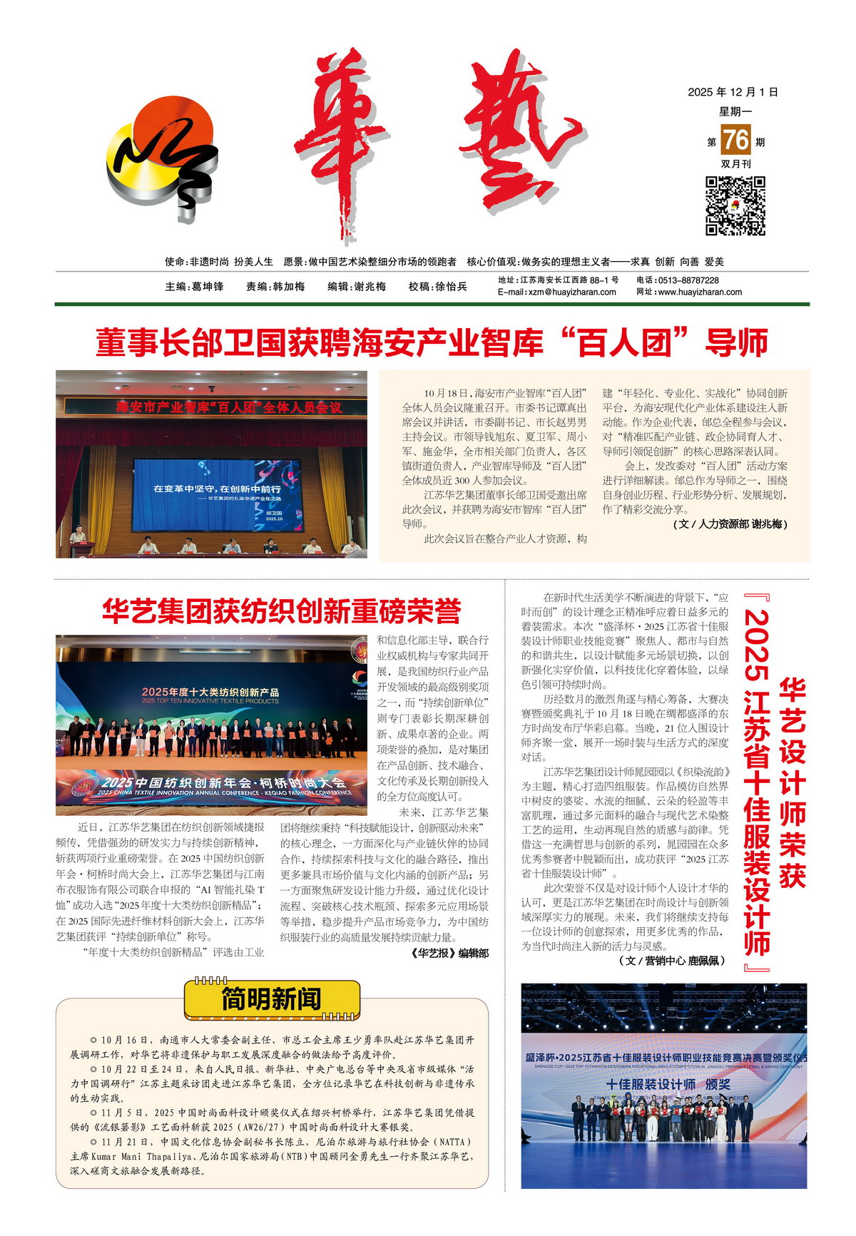 华艺设计师荣获“2025 江苏省十佳服装设计师”